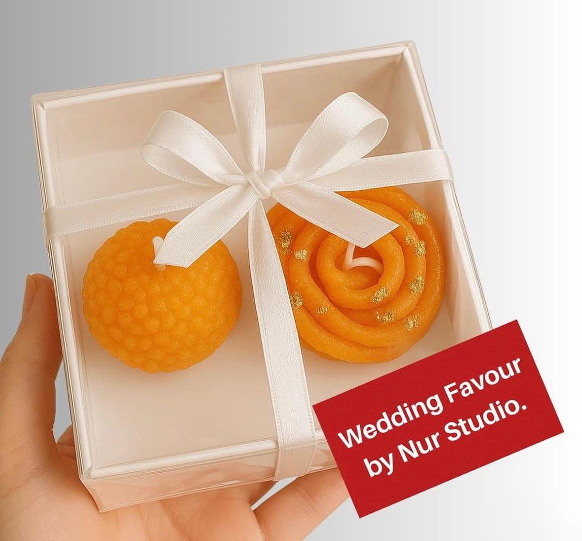 A delightful jalebi and ladoo candle set crafted to look just like your favourite festive mithai.