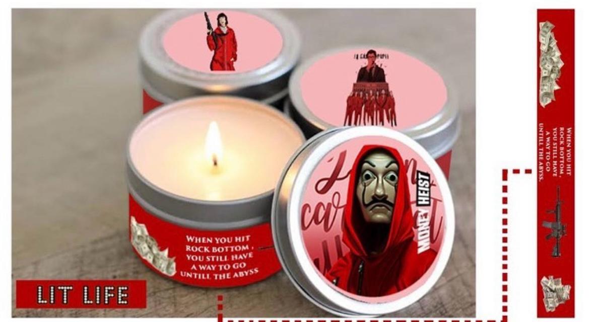 Money Heist–themed tin candle